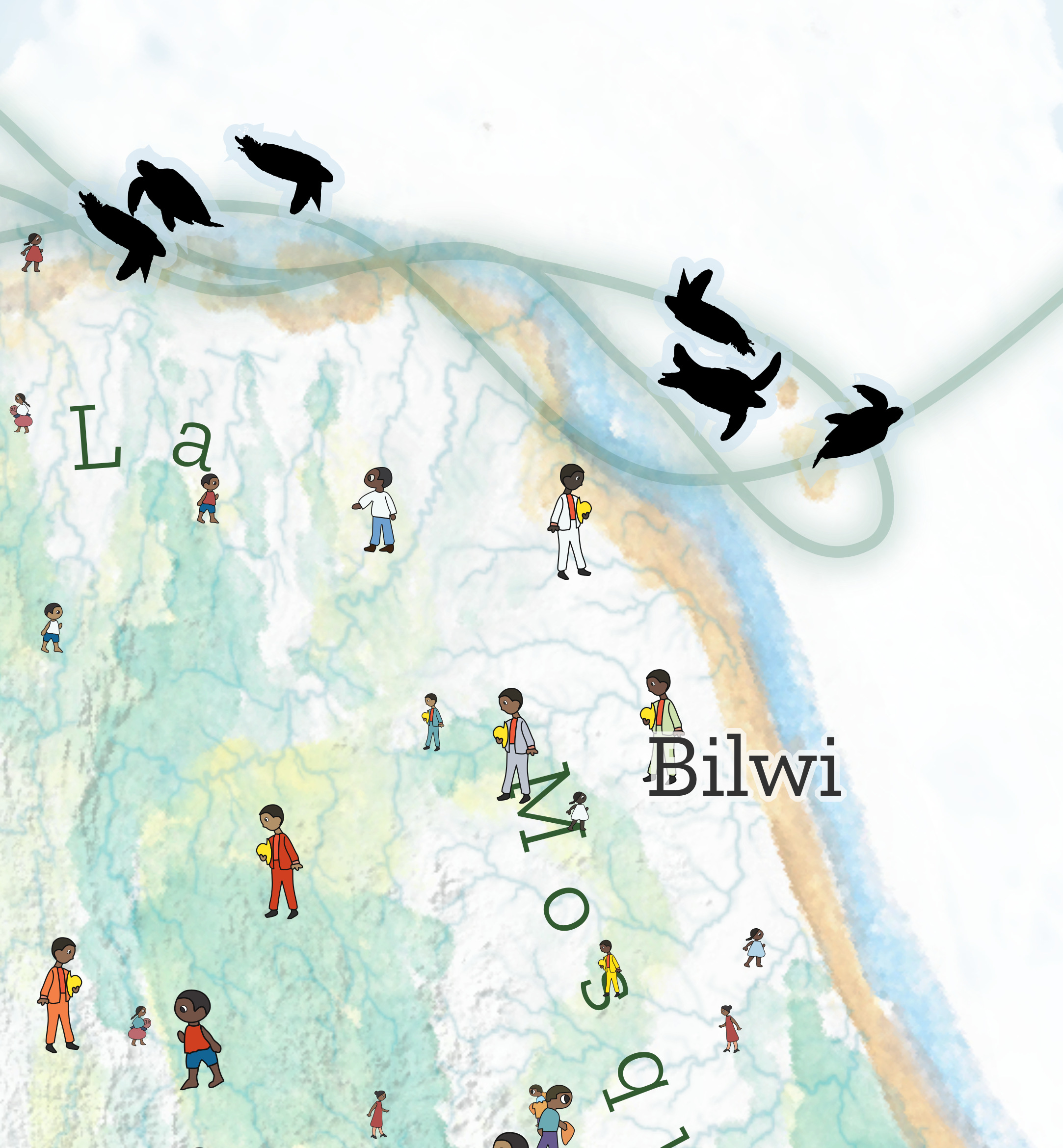Este mapa de Centroamérica explora el tema de la movilidad humana y animal en una región marcada por la migración. Inspiradas en la narrativa crítica, decidimos representar tanto los flujos migratorios de personas como las rutas de especies animales en el contexto de las crisis climática y social. Combinamos acuarelas y herramientas de sistemas de información geográfica, creando así un híbrido entre el trabajo manual y el análisis de datos. El mapa presenta una orientación alternativa y omite las fronteras nacionales, resaltando la continuidad geográfica a través de elementos naturales. Este proyecto busca no solo informar, sino también reinterpretar la riqueza y complejidad de Centroamérica como un territorio diverso y en constante movimiento.
